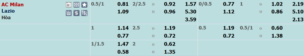Kèo tài/xỉu: Xỉu - Ở mùa giải này, AC Milan thể hiện phong độ cao nhờ lối chơi cân bằng giữa công và thủ. 3/4 trận gần nhất của Rossoneri chỉ có tối đa 2 lần lưới rung. Cả 6 trận gần đây của Lazio cũng có kết quả tương tự.