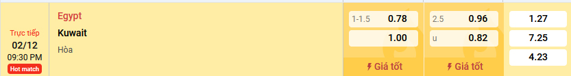 Dù không có sự góp mặt của Salah nhưng Ai Cập vẫn được đánh giá cửa trên trước Kuwait và nó được thể hiện qua mức kèo chấp 1 1/4 trái. Đây là tỷ lệ kèo không đáng tin vào các Pharaoh bởi họ thua kèo tới 9/10 trận gần nhất. Trong khi đó, dù thi đấu không quá nổi bật nhưng Kuwait lại thắng kèo 4/5 trận gần nhất.
