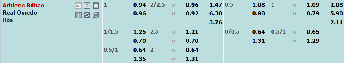 Athletic Bilbao được xếp ở cửa trên với tỉ lệ 0:1 nhưng không đáng tin bởi ở 8 vòng đấu gần nhất, đội bóng này đều không vượt qua rào cản handicap. Trong khi đó, Real Oviedo đã thắng kèo ở cả 2 trận sân khách gần nhất dù bị đánh giá thấp.