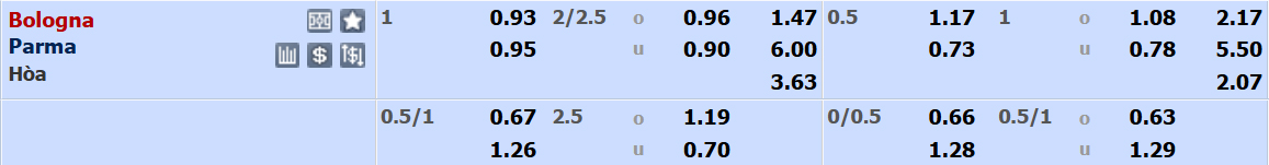 Kèo tài/xỉu: Xỉu - Parma thể hiện phong độ không tốt ở mùa giải này vì sự yếu kém của hàng công. Khả năng ghi bàn của Parma là không cao nên khó có thể kì vọng kịch bản tưng bừng bàn thắng.