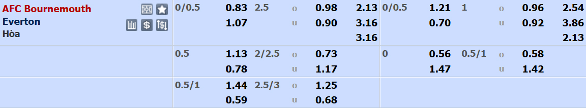 Trên sàn giao dịch, Bournemouth được xếp ở cửa trên với tỉ lệ 0:1/4. Kèo chấp không quá chênh lệch nhưng thầy trò Iraola vẫn mang lại hi vọng lớn bởi họ đã thắng 4/6 trận sân nhà ở Ngoại hạng Anh mùa này theo cả tỉ số chuyên môn lẫn tỉ lệ châu Á. Chưa kể, Bournemouth còn nhận được sự ủng hộ từ quá khứ.
