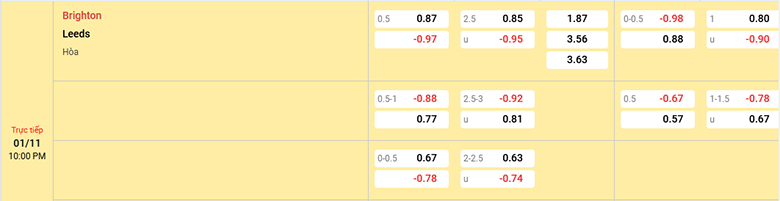 Brighton thi đấu khá tốt trên sân nhà khi đang có chuỗi 9 trận bất bại liên tiếp và giúp các nhà đầu tư châu Á thắng kèo tới 7 lần. Trong khi đó, sân khách vẫn là nỗi ám ảnh với Leeds United và nó được thể hiện qua việc thua kèo tới 6/7 trận gần nhất. Xét về thành tích đối đầu, nhữn chú chim Mòng biển thắng kèo tới 6, hoà kèo 1 và chỉ thua kèo có 3 lần. Với những con số thống kê này, nằm kèo Brighton với kèo chấp 1/2 trái vẫn sẽ là sự lựa chọn an toàn cho người chơi châu Á.