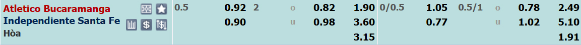 Với phong độ tốt tại sân nhà, Atletico Bucaramanga được xếp ở cửa trên với tỉ lệ 0:1/2. Nhưng ở trận sân nhà gần nhất xuất hiện kèo chấp này, Atletico Bucaramanga đã bị Once Caldas cầm hòa 0-0. Trong khi đó, Independiente Santa Fe đã thắng kèo châu Á ở 4/5 trận gần nhất.