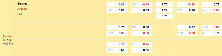 8/9 trận gần đây của Burnley khép lại hiệp đấu đầu tiên với ít nhất một bàn thắng được ghi. Trong khi đó, 6/9 trận đã qua của Arsenal kết thúc 45 phút đầu trận trong những cơn mưa bàn thắng. Với những con số thống kê này, hiệp 1 giữa 2 đội trong ngày hôm nay nhiều khả năng sẽ có nhiều bàn thắng được ghi giống như 4/5 lần so tài trong quá khứ.