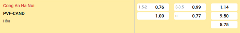 Nhà cái đánh giá rất cao Công an Hà Nội và nó được thể hiện qua mức kèo chấp 1 3/4 trái. Đây là tỷ kèo vẫn có thể tin tưởng được với đoàn quân của HLV Alexandre Polking bởi đối thủ của họ, PVF-CAND thua kèo tới 4/5 trận vừa qua. Hơn nữa, Công an Hà Nội đã thắng tới 5/6 trận vừa qua khi được thi đấu dưới mặt sân quen thuộc và có tới 3 trận có tỷ số cách biệt.