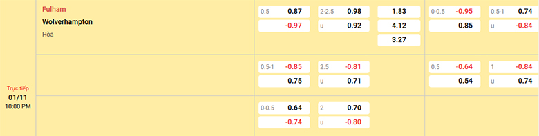 Nhà cái đánh giá cơ hội giành chiến thắng của Fulham là cao hơn so với Wovles và nó được thể hiện qua mức kèo chấp 1/2 trái. Đây là tỷ lệ nên nằm đội chủ nhà bởi họ thi đấu không hề tệ trên sân nhà khi thắng 4/5 trận gần nhất. Trong khi đó, Wolves đang rơi vào cuộc khủng hoảng khi thua kèo cả 3 trận gần nhất.