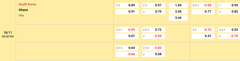 Nhà cái đánh giá Hàn Quốc ở thế cửa trên trước Ghana và nó được thể hiện qua mức kèo chấp 1/2 trái. Đây là điều không quá bất ngờ bởi, các chiến binh Taeguk đang thi đấu vào phom với 2 trận thắng kèo liên tiếp vừa qua trên sân nhà. Trong khi đó, sự thiếu vắng nhiều trụ cột khiến Ghana thua kèo trận gần nhất trong chuyến du đấu châu Á nhằm chuẩn bị cho VCK World Cup 2026.