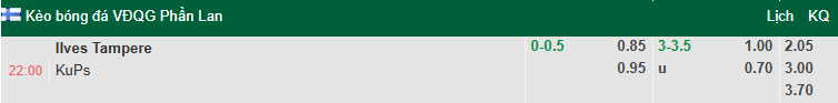 Ilves chấp -1/4 theo handicap ở trận đấu này nhưng khó tạo được sự tin tưởng bởi phong độ sa sút. 10 trận sân nhà gần đây, Ilves thua 7 trận theo handicap. Trong khi đó KuPS bất bại 6/7 trận sân khách gần nhất theo chỉ số tương tự (thắng 5, hòa 1).