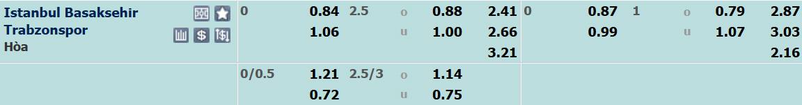 Kèo tài/xỉu: Xỉu - Trabzonspor thể hiện lối chơi phòng ngự rất chặt chẽ ở mùa giải này nên cả 3 trận gần đây của thầy trò Fatih Tekke chỉ có tối đa 2 lần lưới rung. 3/4 màn so tài gần nhất giữa 2 đội cũng có kết quả tương tự.
