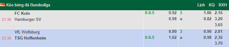 Đây là một trận đấu mang tính chiến thuật cao giữa hai đội đồng cảnh ngộ. Koln có lợi thế sân nhà và khao khát chiến thắng để thoát khỏi chuỗi trận không tốt nhưng Hamburg lại có thành tích đối đầu cực tốt và hàng thủ chơi ổn định hơn. Khả năng cao trận đấu sẽ diễn ra giằng co với ít bàn thắng. Với kèo handicap 0:1/4, lựa chọn cửa dưới an toàn hơn trên sàn giao dịch.
