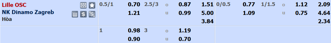 Trên sàn giao dịch, Lille được xếp ở cửa trên với tỉ lệ 0:3/4. Đội bóng Pháp có thể tin tưởng mục tiêu 3 điểm bởi họ vừa thắng liên tiếp 3 trận sân nhà. Ngược lại, Dinamo Zagreb đã thua kèo châu Á ở 4/5 trận sân khách gần nhất.
