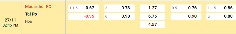 Nhà cái đang niêm yết mức kèo 0:1 1/4 và nó chứng tỏ Macarthur được đánh giá sẽ có một trận thắng cách biệt trước Tai Po. Đây là điều rất dễ xảy ra bởi đại diện của Australia toàn thắng kèo cả 3 trận gần đây tại sân chơi Cup C2 châu Á và có 2 trận trên sân nhà. Trong khi đó, Tai Po thua kèo cả 2 trận xa nhà ở đấu trường cấp châu lục mà không ghi nổi một bàn thắng.