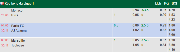 Kèo phụ hấp dẫn: Marseille thắng kèo hiệp 1 - Với phong độ sân nhà hủy diệt, Marseille được kỳ vọng sẽ tạo ra lợi thế dẫn bàn ngay hiệp đầu.