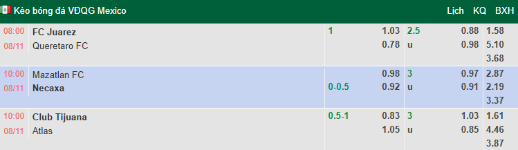Kèo phụ hấp dẫn: Cả hai đội cùng ghi bàn (BTTS) - Cả hai đều thủng lưới rất nhiều trong 6 trận gần nhất (Mazatlan 11 bàn, Necaxa 14 bàn).