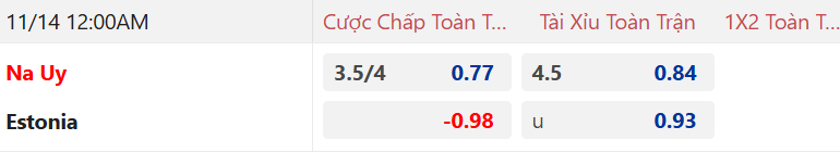 Chênh lệch giữa đôi bên là rất lớn, thể hiện qua việc Na Uy chấp đến 3 3/4 mà ăn rất thấp. Na Uy duy trì sự ổn định và không tính giao hữu thì ở 6 lượt trận đã qua họ có tới 5 lần chinh phục thành công rào cản handicap. Còn về phía Estonia, đội bóng này gây thất vọng cho các nhà đầu tư với việc thua kèo 3/4 trận mới đây. Sẽ là một chiến thắng đậm cho Na Uy ngày hôm nay.