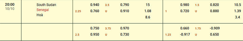 Dù có ưu thế về mặt sân bãi nhưng Nam Sudan vẫn bị đánh giá cửa dưới trước Senegal và nó được thể hiện qua mức kèo được chấp 2 1/4. Đây là tỷ lệ kèo vẫn có thể đặt niềm tin vào thầy trò HLV Pape Thiaw bởi họ vừa thắng kèo cả 2 trận gần đây tại vòng loại World Cup 2026.