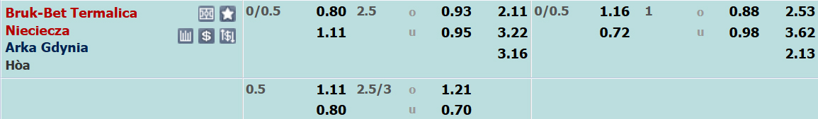 Kèo phụ hấp dẫn: Cả 2 đội cùng ghi bàn - Theo thống kê, 4/5 trận gần đây của Arka Gdynia xuất hiện kịch bản cả 2 đội cùng ghi bàn (both team to score). 5/6 trận gần nhất của Nieciecza cũng có kết quả tương tự.