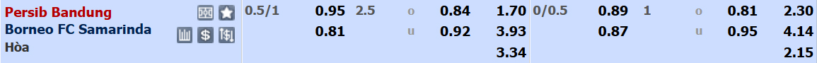 Gặp đối thủ đang dẫn đầu BXH nhưng Persib Bandung vẫn được xếp ở cửa trên với tỉ lệ 0:3/4. Giới đầu tư châu Á có lí do để tin tưởng thầy trò Bojan Hodak bởi họ đang thể hiện phong độ khởi sắc với chuỗi 5 chiến thắng liên tiếp theo cả tỉ số chuyên môn lẫn tỉ lệ châu Á. Ngược lại, Borneo đã thua kèo ở cả 2 vòng đấu gần nhất.