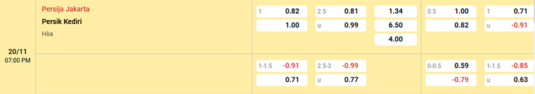 Nhà cái đánh giá khá cao Persija Jakarta trong màn tiếp đón Persik Kediri và nó được thể hiện qua mức kèo chấp 1 hoà. Đây là tỷ lệ kèo người chơi châu Á vẫn nên đặt niềm tin vào đội chủ nhà bởi họ thắng kèo 3 và hoà kèo 1 trong mạch 4 trận bất bại gần nhất. Trong khi đó, Persik Kediri đang rơi tự do khi thua kèo cả 4 trận đã qua. Điều quan trọng nhất là Persija Jakarta toàn thắng kèo cả 4 lần so tài gần nhất giữa 2 đội.