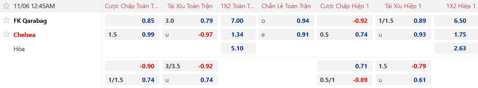 Kèo phụ hấp dẫn: 2 đội cùng ghi bàn - Qarabag đã nổ súng trong cả 3 trận đấu mở màn cúp C1 châu Âu mùa này. Bên kia chiến tuyến, Chelsea cũng đang khởi sắc trong tấn công. Họ đã trải qua liên tiếp 14 trận ghi bàn trên mọi đấu trường.