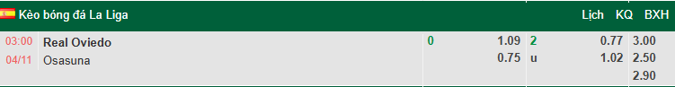 Kèo Tài/Xỉu: Chọn Xỉu - Cả Oviedo (hàng công tệ nhất, 7 bàn) và Osasuna (thành tích sân khách kém, 1 bàn sau 5 trận) đều khó tạo ra xu hướng bùng nổ bàn thắng.
