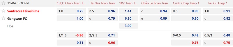 Sanfrecce Hiroshima không quá vượt trội Gangwon về tương quan lực lượng. Nhưng với lối chơi cởi mở và phong độ tốt tại sân nhà, đội bóng của Nhật Bản hoàn toàn có thể tin tưởng mục tiêu 3 điểm. Kèo chấp 1 hòa với điểm ăn khá thấp cho cửa trên đã báo hiệu 1 trận đấu thuận lợi cho đoàn quân của HLV Michael Skibbe.