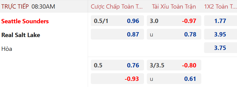 Thị trường châu Á ghi nhận tỷ lệ Seattle Sounders chấp 3/4 trận này với lợi nhuận cao hơn cửa dưới. Kèo như vậy chưa phải là khả quan dành cho chủ nhà. Seattle Sounders có 5 trận liên tiếp chỉ hòa với thua về phương diện châu Á. Còn Real Salt Lake 2 trận mới đây đều không thua về tỷ lệ và họ thắng về handicap ở cả 4 lần gặp Seattle Sounders gần nhất.