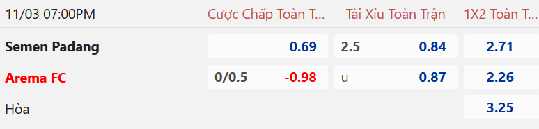 Tỷ lệ hiệp 1 ở mức khách chấp về giá và tài xỉu 1 hòa có lợi nhuận thấp hơn cho lựa chọn mốc trên. Nhìn chung thì khó kỳ vọng vào sự tưng bừng ở thời gian HT trận này. Semen Padang có 6 trận liền tịt ngòi trong hiệp 1, còn Arema cũng chẳng thể ghi bàn ở thời gian HT trong 3 trận sân khách vừa qua.