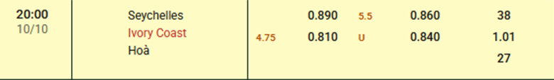 Nhà cái đang niêm yết mức kèo 4 3/4:0 và nó cho thấy sự chênh lệch về đẳng cấp giữa 2 đội. Đây là tỷ lệ kèo vẫn có thể đặt niềm tin vào Bờ Biển Ngà bởi trong trận lượt đi họ đã hủy diệt Seychelles tới chín bàn không gỡ. Đây là sự khởi đầu cho chuỗi 8 trận thua của đối thủ này tại vòng loại World Cup 2026.