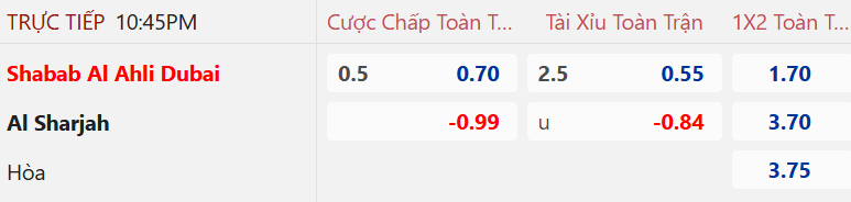 Thị trường châu Á ghi nhận kèo Shabab Al Ahli chấp hòa trận này với điểm ăn thấp. Nhìn vào vị thế, tên tuổi của đôi bên thì mức handicap đó về cơ bản là khả quan với Shabab Al Ahli. Họ vẫn ổn ở sân nhà với 4 chiến thắng ở 5 vòng tiếp khách gần đây. Còn Al Sharjah tỏ ra không đáng tin cậy khi thua theo châu Á ở 4/6 trận vừa qua.