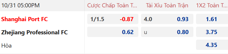 Tô Bún Chả hôm nay có gì: Soi kèo Shanghai Port vs Zhejiang Professional, 17h00 ngày 31/10