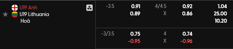 Năm ngoái U19 Anh chỉ thắng tối thiểu nhưng lần này mọi chuyện có thể sẽ khác. U19 Anh vẫn được đánh giá rất cao với kèo chấp 3 1/2. Họ đang thi đấu thăng hoa khi thắng đậm các trận gần đây dù gặp đối thủ không hề nhẹ ký. U19 Anh có 4 trận liên tiếp không thua về góc độ châu Á, còn U19 Lithuania gục ngã trước rào cản handicap ở 4/6 trận có tỷ lệ mới đây.