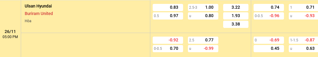 Nhà cái đang niêm yết mức kèo 1/2:0 và nó chứng tỏ Ulsan bị đánh giá thấp hơn Buriram. Với mức kèo này, người chơi châu Á hoàn toàn có thể đặt niềm tin vào đại diện của Hàn Quốc bởi họ thắng kèo cả 4 trận ra quân tại sân chơi Cup C1 châu Á. Trong khi đó, Buriram thi đấu trồi sụt trên sân khách khi thua kèo 4/5 trận gần nhất, bao gồm cả 2 trận tại đấu trường AFC Champions League.