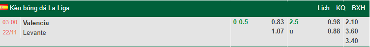 Kèo Tài/Xỉu: Chọn Xỉu - Mặc dù Levante thủng lưới nhiều, tính chất của một trận derby và phong độ ghi bàn thấp của Valencia (chỉ ghi 12 bàn/12 trận) sẽ khiến trận đấu diễn ra chặt chẽ.