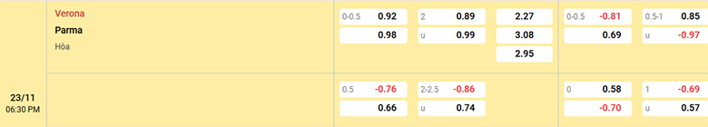 Verona vẫn chưa thể thắng, Parma thắng kèo châu Á
