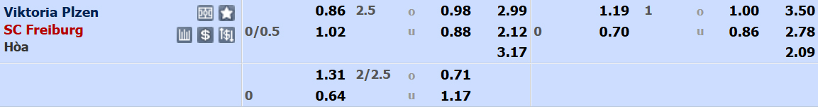 Trên sàn giao dịch, Freiburg được xếp ở cửa trên với tỉ lệ 1/4:0. Kèo chấp này chưa đủ để Freiburg được tin tưởng. Thực tế, trong 7 trận xa nhà gần nhất, đội bóng của Đức chỉ giành vỏn vẹn 2 chiến thắng. Trong khi đó, Viktoria Plzen lại được đánh giá cao về phong độ tại sân nhà.