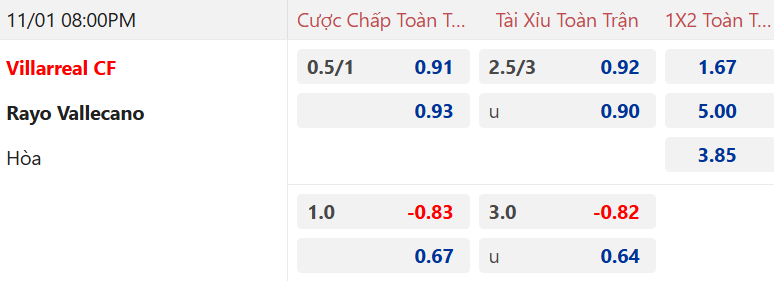 Thị trường châu Á ghi nhận kèo Villarreal chấp 3/4 trận này với lợi nhuận gần như cân bằng giữa các lựa chọn đối lập. Kèo như vậy chưa phải mức khả quan dành cho “tàu ngầm vàng”. Villarreal thua theo châu Á ở 4/6 trận gần đây, trong khi Vallecano chỉ gục ngã 1 lần trước rào cản handicap trong 5 trận vừa qua. Thêm vào đó, cửa trên cũng chỉ thắng kèo 1/6 cuộc đụng độ mới nhất giữa đôi bên.