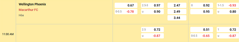 Nhà cái đang niêm yết mức kèo 1/4:0 và nó chứng tỏ Macarthur được đánh giá cao hơn chủ nhà Wellington Phoenix. Đây là tỷ lệ kèo rất đáng nghi ngờ bởi đội bóng này thua kèo cả 3 trận xa nhà ở mùa giải năm nay. Hơn nữa thành tích đối đầu cũng đang chống lại họ khi thua kèo tới 7/10 trận.