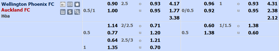 Khởi đầu tốt hơn và toàn thắng trong 3 màn đụng độ trước đây nên Auckland được xếp ở cửa trên với tỉ lệ 3/4:0. Nhưng như đã đề cập ở trên, Auckland mới chỉ ghi 3 bàn, không phải lựa chọn đáng tin. Trong khi đó, Wellington chỉ thua 1/8 trận gần nhất trên mọi đấu trường.