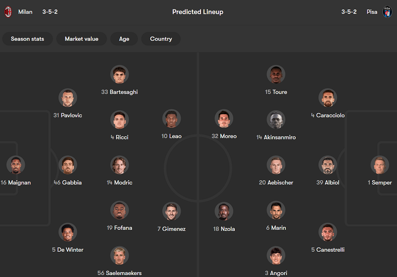 Link xem trực tiếp AC Milan vs Pisa hôm nay