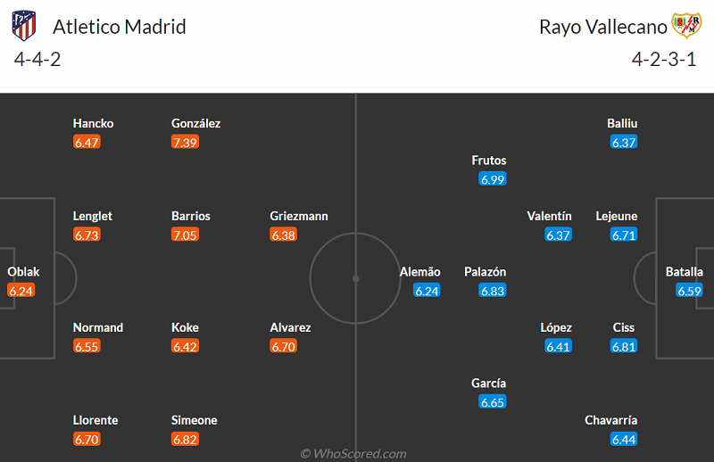 Thông tin trận đấu Atletico Madrid vs Rayo Vallecano