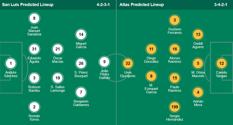 - Atletico San Luis: Cesar Lopes chưa bình phục chấn thương; Juanpe chưa chắc chắn về khả năng ra sân.