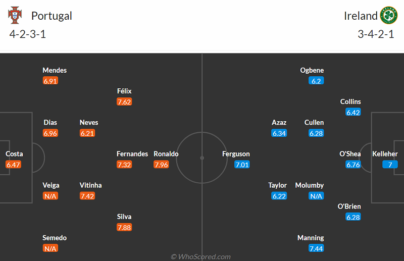 Chiến thắng gần nhất của Bồ Đào Nha khi tiếp đón CH Ireland có cách biệt 3 bàn. Bồ Đào Nha dĩ nhiên mang về niềm vui cho tất cả khi ‘chỉ’ chấp Ireland 1,75 trái (chứ không phải 2,25 trái như hiện tại).