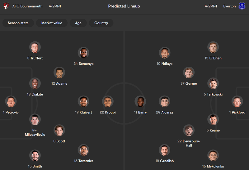 - Bournemouth: Ryan Christie và Ben Gannon Doak chưa bình phục chấn thương; Marcos Senesi và Lewis Cook không thể thi đấu vì lý do thẻ phạt; khả năng ra sân của Matai Akinmboni còn bỏ ngỏ.