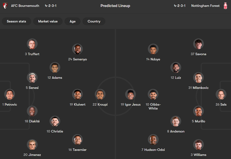 Thông tin trận đấu Bournemouth vs Nottingham Forest