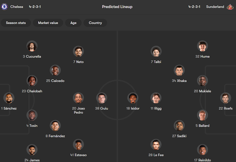 Sau vòng 8, Chelsea kém 5 điểm so với đội dẫn đầu là Arsenal: 14 so với 19. Nếu đánh bại Sunderland, tập thể do HLV Enzo Maresca dẫn dắt sẽ tạm thời vươn lên vị trí thứ 2. Sunderland mới thua 2 trận kể từ khi Premier League 2025/26 khởi tranh và cùng có được 14 điểm như Chelsea.