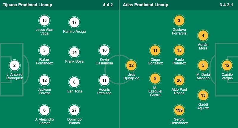 - Club Tijuana: Không thiếu vắng cầu thủ nào vì chấn thương hay thẻ phạt.
