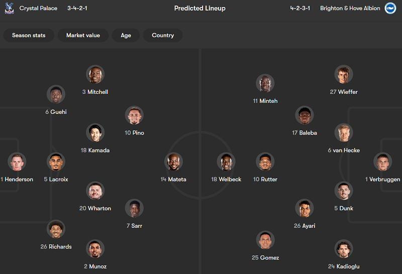 - Brighton: Brajan Gruda, James Milner, Adam Webster, Jack Hinshelwood và Solly March chưa thể tái xuất; khả năng ra sân của Joel Veltman và Kaoru Mitoma còn bỏ ngỏ.