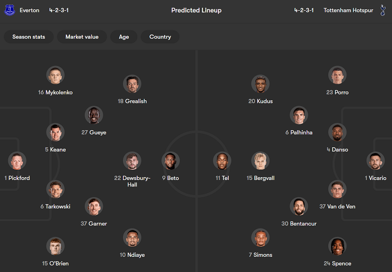 Sau vòng 8, Tottenham vẫn sở hữu 14 điểm - nhiều hơn 3 điểm so với Everton, đội vừa thua Man City với cách biệt 2 bàn không gỡ bởi cú đúp của Erling Haaland. Spurs không ‘lợi hại’ như The Citizens nên tập thể dưới trướng HLV David Moyes có thể đặt mục tiêu giành điểm.
