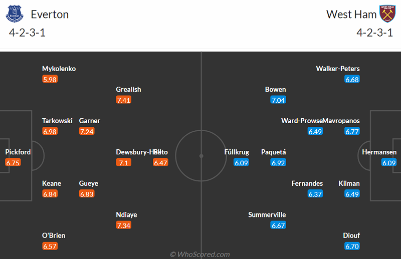 Thông tin trận đấu Everton vs West Ham